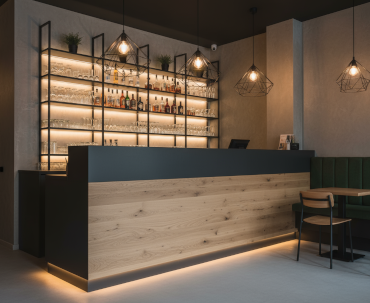 Vyrábame odolné barové a obslužné pulty, stoly, lavice na sedenie (boxy) a ďalšie vybavenie, ktoré znesie vysokú záťaž a zároveň vytvorí jedinečnú atmosféru vášho podniku.