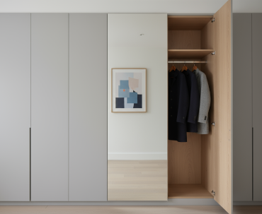 Pre dokonalé skrytie sezónneho oblečenia a ďalších vecí je ideálnym riešením vstavaná skriňa na mieru. Veľké zrkadlové plochy, či už ako súčasť dverí skrine alebo samostatne, navyše dokážu malý priestor opticky zväčšiť a presvetliť.